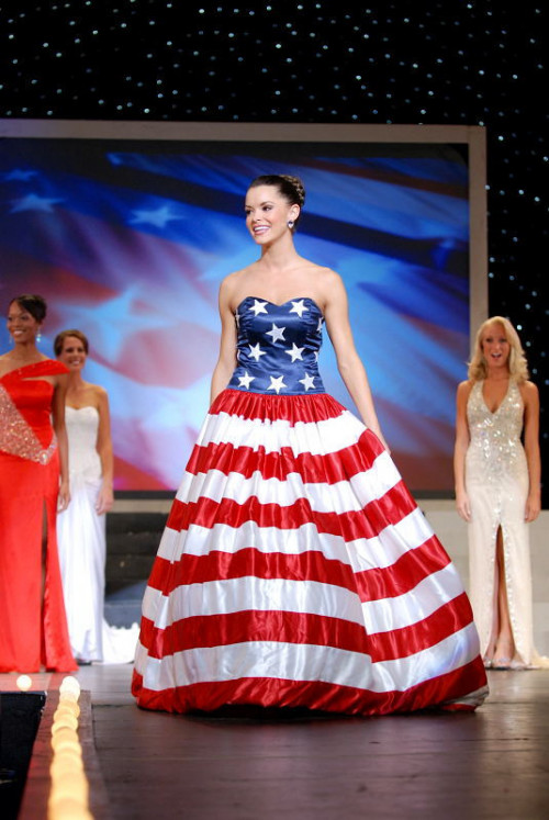 A lot of people think the life of a Miss Virginia is glamorous. The outgoing Miss Virginia, Hannah Keifer, can tell you otherwise. For if you win, people will undoubtedly force you to wear something that is beyond the realm of good taste. Like this dress, the impact of which was magnified by the singing of “God Bless the U.S.A.”.