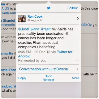 This is what happen. Dwana tweeted about the GiveForwad Life Fund she organized on my behalf. Then someone tweeted to me and Dwana that HIV/AIDS has practically been eradicated. My gut reaction was a curse deep within but I let the moment pass and this morning I tweeted in response to her misinformation and I didn’t curse!