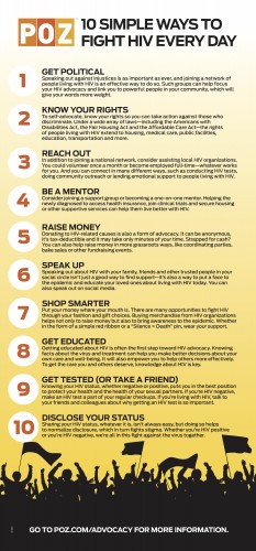 Donating to HIV-related causes is also a form of advocacy. It can be anonymous, it’s tax-deductible and it may take only minutes of your time. Strapped for cash? You can also help raise money in more grassroots ways, like coordinating parties, bake sales or other fundraising events.