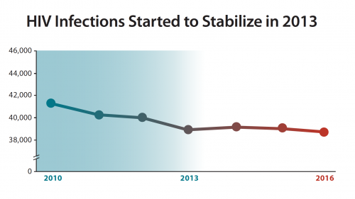 In a press release, the CDC stated that, according to the most recently available data, “The dramatic decline in annual HIV infections has stopped and new infections have stabilized in recent years.”