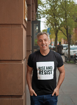 FAVORITE MEMORY: Murphy recalls when Rise and Resist members visited two restaurants in Trump International Hotel & Tower for brunch in January. “At a certain point, we all started coughing loudly,” Murphy recalls. “Then we stood up, held signs and chanted, ‘We need Obamacare. Trumpcare makes us sick,’ as security slowly ushered us out into the street, where hundreds of people were rallying.” For Murphy, it felt great to “disrupt that little enclave of wealth and profit for Trump” to make a statement. When Murphy’s protesting the president, he notes, Trump supporters often yell, “Get a job!” His response? “I yell back, ‘I have a job, but this is important to me. What’s important to you?’” —AG