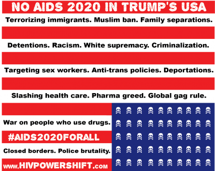 Trump’s America is no place for the 2020 International AIDS Conference (AIDS 2020), say more than 60 U.S. human rights organizations and 11 population groups, including the Global Network of People Living with HIV, the HIV Youth Leadership Fund, the International HIV/AIDS Alliance and the Positive Women’s Network–USA (PWN-USA, which authored a press release on the topic).