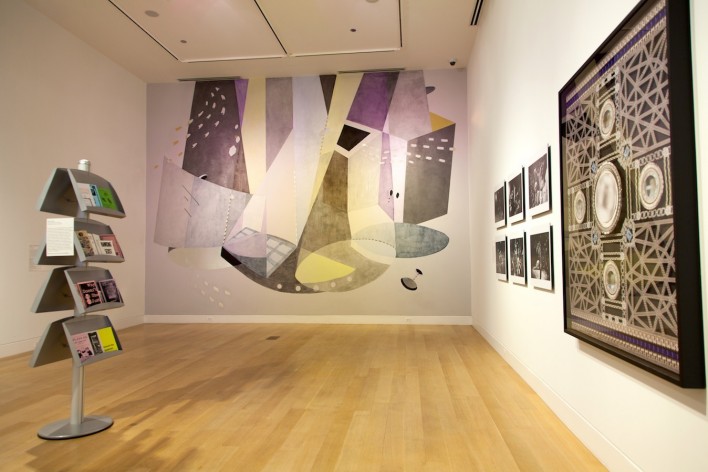 Aay Preston-Myint’s “Rainbows are the Shadows of a Presence,” 2016, wall drawing with mixed media and colored lights, approximately 12x20 feet, pictured at the DePaul installation.Courtesy of DePaul Art Museum/Lizbeth Applewhite