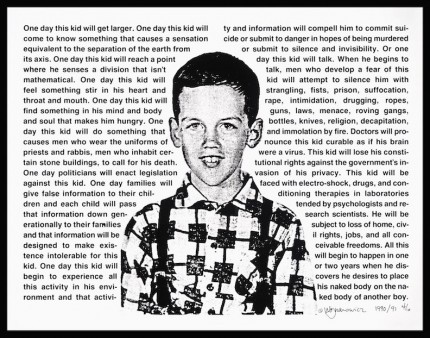 It’s the first line of an artwork by David Wojnarowicz—Untitled (One Day, This Kid) from 1990. The Art Institute of Chicago loaned it to the exhibition.