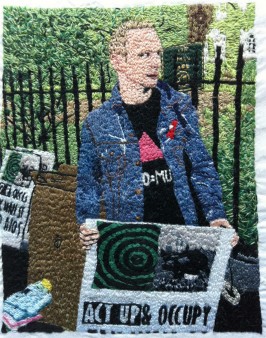 LJ Roberts,Ted Kerr at the ACT-UP 25th Anniversary Protest, NY, NY, 2012, Single-strand embroidery on cotton