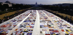 The AIDS Memorial Quilt is displayed for the first time on the National Mall in Washington, DC, during the National March on Washington for Lesbian and Gay Rights. (1987)