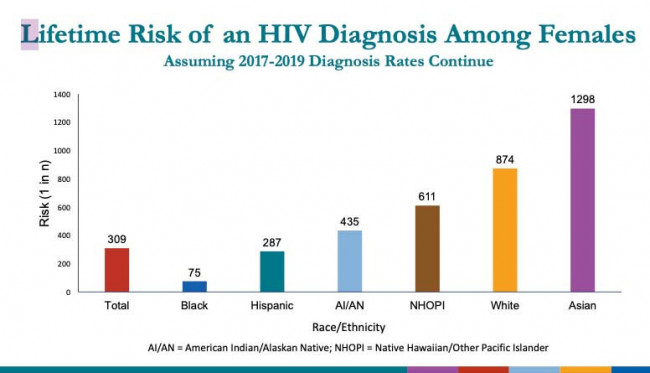 A similar pattern was seen for women. While 1 in 309 women overall are projected to acquire HIV in their lifetime, this rose to 1 in 75 Black women and 1 in 287 Latina women. The projected rates were 1 in 874 for white women and 1 in 1,298 for Asian women.
