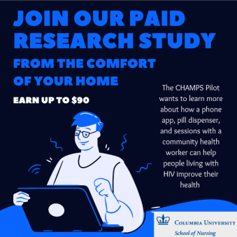 Statement: Led by Dr. Rebecca Schnall (Columbia University School of Nursing), the CHAMPS Pilot study aims to understand how a remote CHW can help improve HIV medication adherence among PLWH.