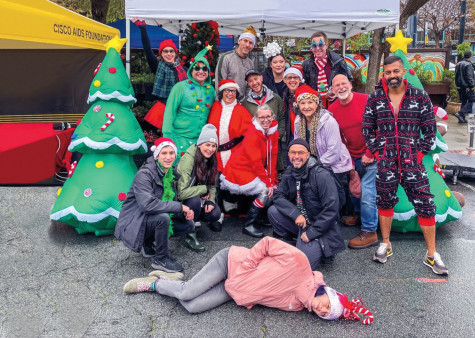 Each year, the San Francisco AIDS Foundation organizes a Santa Skivvies Run (skivvies not pictured), a combination fun run and walk to raise money for health justice and lifesaving services. In December, community members and partners raised $73,000 (pictured above).