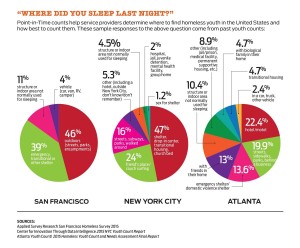 At the end of the day, “Having a Point-in-Time count lets you know what kinds of services you need available to help them,” Cruz says. And it’s the youth-count workers in 2017 who are on the front lines of that effort.