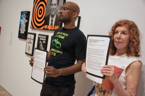 The protesters targeted History Keeps Me Awake at Night, an exhibition of artwork by David Wojnarowicz, a former member of ACT UP who died of AIDS complications in 1992 at age 37. The museum describes Wojnarowicz as a “queer” artist whose subject was “the outsider” and whose work—spanning film, photography, painting and more—often directly addressed the AIDS epidemic. ACT UP also protested the show An Incomplete History of Protest, which features protest art spanning the 1940s to 2017, including a room devoted to HIV/AIDS-themed videos, posters, artworks and more.