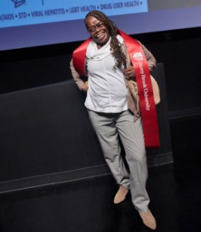 Shatarra Barnes, my boss. (She’s not HIV positive but works in the HIV community as program director of health homes at Acacia Network).