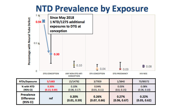 Longer-term follow-up from the Tsepamo study—which now has data on nearly 120,000 births at 18 hospitals through March 2019—showed that there were three cases of neural tube defects per 1,000 women exposed to dolutegravir, or about two additional cases per 1,000 women compared with those not exposed.