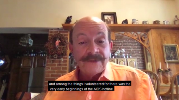 Visitors to the online exhibit can click through screens and listen to interviewees recount the importance of community and the devastation of the AIDS crisis—“I have lost more than 400 friends to this disease,” says public health worker David Moyer in one of the videos—as well as the advocacy that sprung up. Other participants discuss the challenges of maintaining their mental health and social structures during COVID-19 lockdowns. (Screengrabs of some participants are posted throughout this article.)