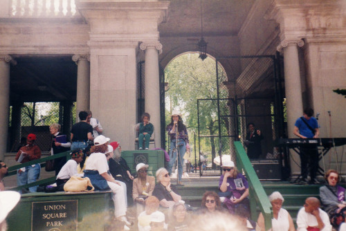 “Kwan and Kia Speaking at a Union Square Rally,” 1995Courtesy of Fotografiska New York/Kia LaBeija