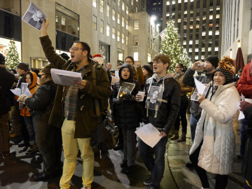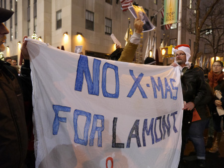 In response, activists from ACT UP New York, Occupy Wall Street, Streetworks and others rallied December 11 holding a banner reading “No X-mas for Lamont” near the Christmas tree at Rockefeller Plaza, Al Jazeera America reports. More than 100 activists and the Valentin family, including his wife Lah-nah and their 2-year-old son, were seeking state legislation they called “Lamont’s Law” to forbid automatic denial of transplants for people living with HIV.