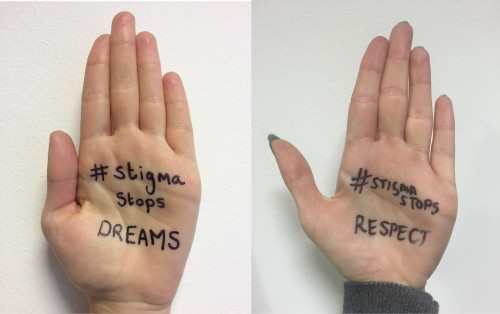 - Help to highlight how widespread stigma really is. Write the hashtag #StigmaStops along with a form of discrimination you have faced on the palm of your hand and post a picture or video on social media (example here). Don’t forget to use the hashtag #StigmaStops. Your submissions will be used in a special video that we will launch on Zero Discrimination Day to call for an end to stigma.