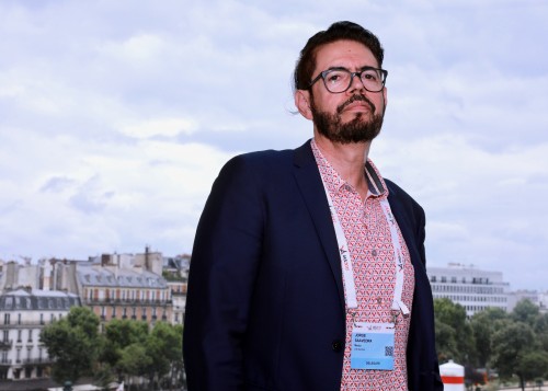 Jorge Saavedra, MD, MPH, global public health ambassador at AHF, peppered presenters with skeptical questions throughout the conference.Benjamin Ryan