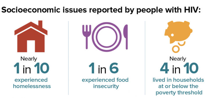 People with diagnosed HIV were more likely than the population at large to face socioeconomic challenges that can make it more difficult to maintain good health, including poverty, unemployment and homelessness.