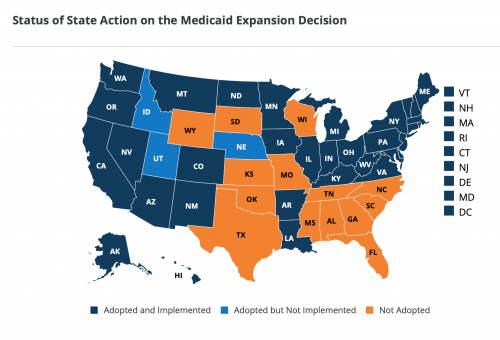Map of status of state action on the Medicaid expansion decision.Kaiser Family Foundation