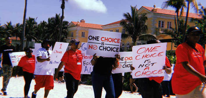 Last month, AHF activists protested the governor’s Medicaid plan by taking to the sand outside his beach house. Their posters read: “One choice is no choice.”