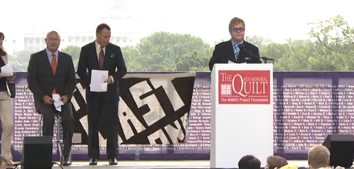 Advocates pay tribute at the AIDS Memorial Quilt display on the National Mall during the XIX International AIDS Conference.