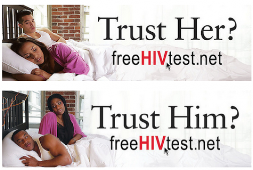 A billboard public awareness campaign by AIDS Healthcare Foundation (AHF) hopes to encourage HIV testing, as well as honesty and transparency in sexual relationships, by depicting couples in bed and raising the question “Trust Him?” or “Trust Her?”