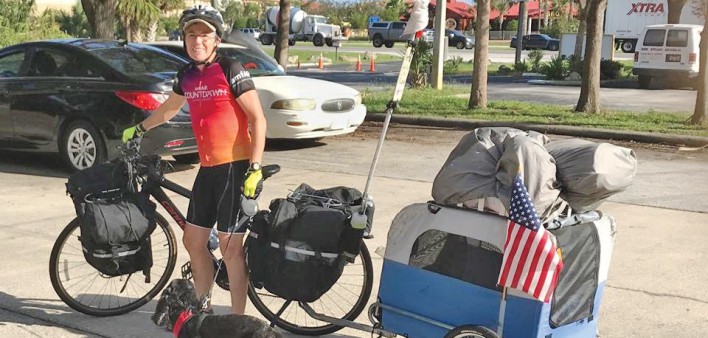I started in Alaska, went through Canada, Minnesota, Wisconsin, Michigan, Ohio, West Virginia, Virginia, North Carolina, South Carolina, Georgia and Florida. I stayed at campsites, hotels and strangers’ homes. I pulled a little trailer for Jackson—a 20-pound Havanese rescue dog—which also had a tent, sleeping bag, my gear, toiletries. And on my bike was welded a post so I could carry a 3-by-5-foot AIDS flag.