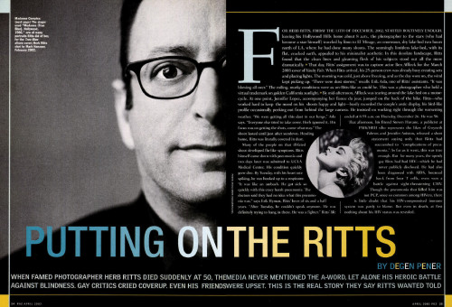 Cover: When photographer Herb Ritts died suddenly in December, the media never mentioned AIDS, let alone his battle against blindness. Inside: A new law in California requires HMOs to refer people living with HIV to an HIV specialist; a passionate practice-what-you-preach pastor gets tested for HIV in front of his congregation. Plus: How to lose your job without losing your insurance.