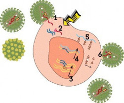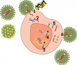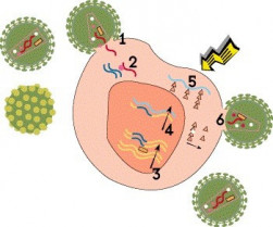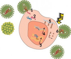 Tu cuerpo produce nuevas células en la piel y en la sangre constantemente, y cada célula a menudo produce nuevas proteínas para poder mantenerse viva y reproducirse. Los virus esconden su propio ADN en el ADN de la célula. Entonces cuando la célula trata de elaborar sus propias proteínas, accidentalmente también produce nuevos virus.