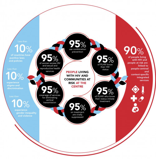 But here’s the thing. To end the epidemic, much focus needs to be directed toward prevention, i.e. to those NOT infected. Yet four of the six new 95% targets (see the schematic above) relate to those living with HIV and only two that are not. But then there is a side target (90% of people at risk are linked to “people-centred and context-specific integrated services”). That’s a necessary nod to prevention work. Not perhaps ideal, but an improvement; 90-90-90 gave scarcely a nod to prevention work directed at the HIV-negative, despite it being essential work.