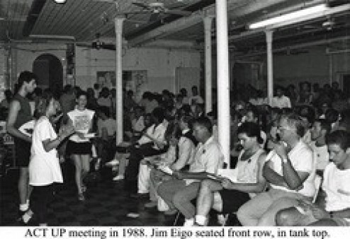 And now this, from Jim Eigo. If Larry Kramer was ACT UP’s father, Mark Harrington its boy genius, and Maxine Wolfe, Ann Northrop, and Iris Long its professors, then Jim Eigo was its moral compass. I have never met a more selfless activist, one who was both gentle with his comrades and a force that all others had to reckon with.