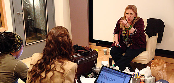 Early on in the episode it was made very clear that neither Arsenio nor Dayana has any clue as to how to write, compose, sing, dance or choreograph...essentially every skill necessary to succeed in this particular assignment. Lucky for Arsenio, his team-member Aubrey has no problem stealing the spotlight and she created a presentation based on “Hollaback Girl” (Gwen Stefani’s pop anthem in which she spells out B-A-N-A-N-A-S dressed as a cheerleader). Across the hall, Team Unanimous tried to work as a team, but the combination of Lisa Lampanelli’s hard-headedness, Aiken’s arrogance and Mendoza’s language barrier proved to be disastrous.