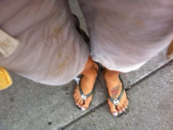 I was frustrated and finally I gave into the fact that I couldn’t totally clean them in this sink in Starbucks, it wasn’t fair to them or me. So I resolved to put them back on, part wet, part soiled and part dry.