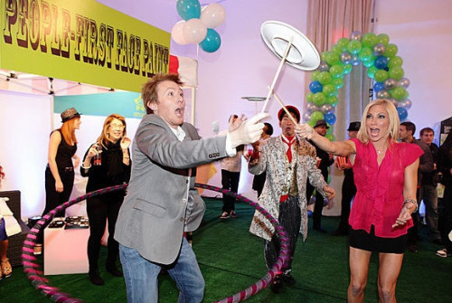 After both competitors finished their commercials, it was time to set up the parties. People baring the biggest checks could get one of the limited tickets to the final task. The finalists raised money for their charities by selling the tickets for thousands of dollars. Arsenio got Jay Leno, Chris Rock, Eddie Murphy, George Lopez, Jimmy Kimmel, Whoopi Goldberg and Marco Andretti to donate to the Magic Johnson AIDS Foundation. Meanwhile, on the other side of the curtain (the parties took place in the same venue but were separated by drapes), Claymates donning Clay T-shirts and inked with Aiken tattoos joined fellow American Idol alum Kelly Clarkson as they contributed to Clay’s charity the National Inclusion Project.