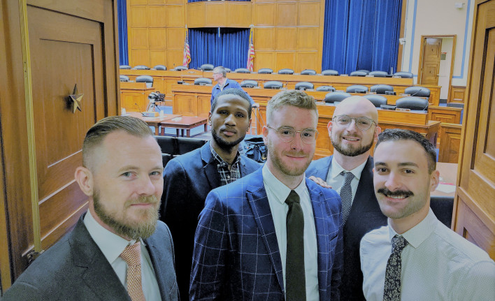 Other advocates began arriving, and we grabbed a shot in the doorway before they closed it. Congressional staff would be gathering inside and they would not open the doors to the public for nearly an hour longer.