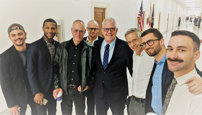 Okay, it’s go time and swearing-in takes place. The witnesses also included Tim Horn (center), longtime HIV treatment activist and now with the National Association of State and Territorial AIDS Directors (NASTAD). He kicked ass, too.