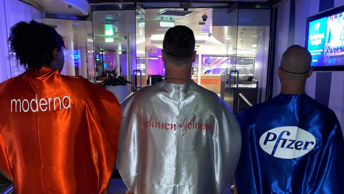 An Atlantis Hero-themed Party included revelers dressed as COVID vaccines. (photo: Ruben Garcia Jr.)