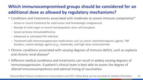 People living with HIV should be prepared to get an additional COVID vaccine booster. While there is no official recommendation, below is the critical slide that was presented at the July 22nd meeting of CDC’s Advisory Committee on Immunization Practices (ACIP). Click here to download the complete presentation.