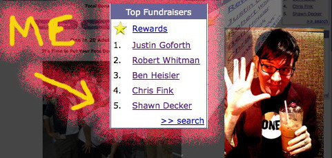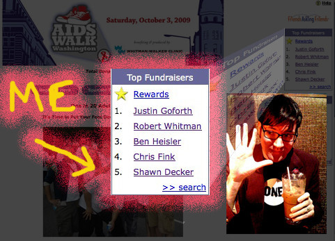 So the trip to Dragon*Con -which I’ll be blogging about more tomorrow- cost me my Top 5 spot in the AIDS Walk Washington DC standings. Since I wasn’t out there hustling for donations, some other guy came in and knocked me out of the top five by about $300...