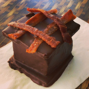 By Friday, I had been to Chocotoo twice for a total of 6 cookies. That should have been my limit but when my girlfriend Dwana arrived to San Jose, I had to introduce her to the best cookies ever. That day I got 2 Reees’s and 1 S’mores. I should have stopped there, but following Dwana’s lead, I got the homemade marshmallow S’mores. This delight was 4 inches of homemade marshmallow between two graham crackers dipped in dark chocolate, with caramelized bacon on top.