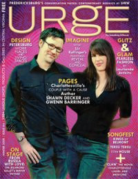 Also, a local magazine called Urge did a cover story on me and Gwenn. Click over if you want to read the story and check out a great new publication that focuses on all things artistic as they pertain to the Commonwealth of Virginia.