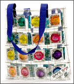 You’ll never be out of fashion with this gift. Safe Sax’s classic tote features 16 condoms sealed in high quality clear vinyl on each side. The recipient of this gift will spread awareness and look good! A portion of the proceeds goes to non-profit organizations aligned with AIDS prevention and education.