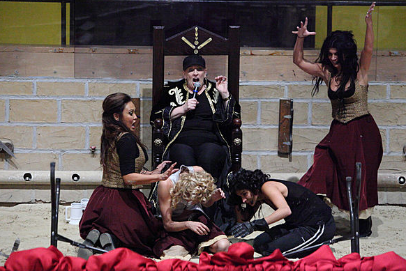 Contestants this week were tasked with creating an original production of Medieval Times. I went to the dinner and tournament show when I was a kid. I remember sitting next to a glutton who was eating the biggest drumstick I had seen in my life. I was bored. The crowd, however, ate it up.