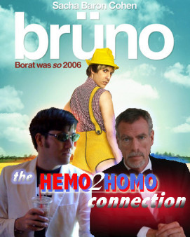 HOMO: Well, I don’t want to say you look a little gay or anything, but not even Bruno wore that much eyeliner... When I first heard that there would be this insane movie about a totally exaggerated, offensive gay stereotype running around scaring straight people, I was waiting for the scene where he asks Carrie Prejean about gay marriage and then calls her names in an insane rant equal only to “Leave Britney alone.”