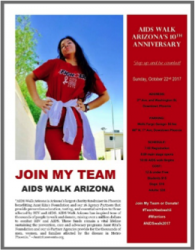 My name is Nicole Begay and I am a strong advocate for HIV and AIDS. I had the chance this year to join Aunt Rita’s Foundation in Phoenix Arizona to be a team leader for the Phoenix AIDS walk. Making a team this year is the first step for me getting out into the community and giving back to those who have made a difference in my life. The team that I created ended up with 33 members and we exceeded our goal of $1,500.00 and ended up raising $1,730.00 for HIV/AIDS. My team name is Team Naabaahii. Naabaahii is Navajo for a warrior, one who says what is in the people’s hearts. In Dine the Naabaahii were men and women who fought an enemy and/or an illness/disease. This fundraiser provides prevention education, testing, and essential services to those affected by HIV/AIDS.