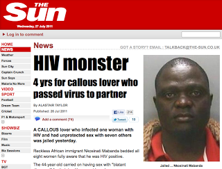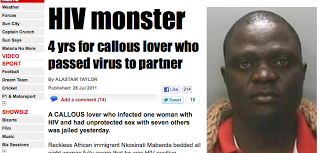 The British tabloid press had a field day yesterday following the sentencing of Nkosinati Mabanda, 44, at Wolverhampton Crown Court for ’reckless’ HIV transmission. He received a four year prison sentence; was also given an anti-social behaviour order (ASBO) ordering him not to have sex without first revealing his HIV status (this is the first time ever someone with HIV has been given this order and it is unclear if this also covers his time in prison); and will be considered for deportation following his release.