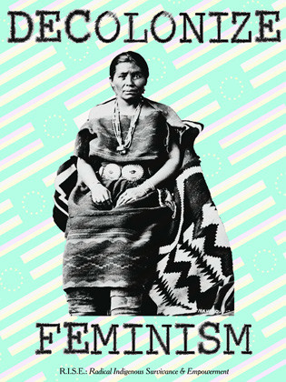 Well, I woke up at 4:30 and knew I wanted to make a poster. That was my initial thought. Everything else just came streaming out of the canyon, as it were. I started off as a writer, so most of the images that come to mind are text-based. Sometimes I include photography, Native-inspired designs, and appropriated photographs or designs, like with this #decolonizefeminism series that utilizes appropriated images of Indigenous women with original text.