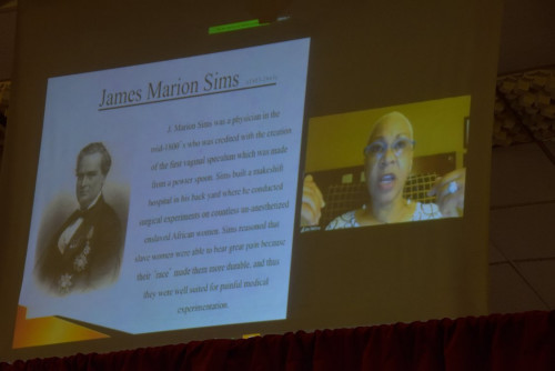 During the second session, Joy DeGruy, PhD, examined how the history—from the trauma of slavery onward—of African Americans has impacted Black attitudes and behavior concerning medical care. DeGruy, who was unable to attend the event, delivered an informative and powerful presentation via video chat.