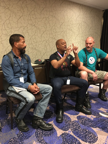 In the workshop titled “Kick A.S.S.—HIV + Aging,” Mr. Palm Springs Leather 2018 Jax Kelly talked about AIDS Survivor Syndrome (ASS), a term used to describe the ongoing trauma experienced by those who lived through the first two decades of the HIV/AIDS epidemic. Kelly explained how the Palm Springs chapter of the advocacy group Let’s Kick ASS supports education and advocacy to raise awareness of long-term survivors and the challenges they face. Kelly also discussed other medical and behavioral concerns regarding HIV and aging in the United States and how “U=U” (“Undetectable Equals Untransmittable”) has the potential to reduce HIV-related stigma for long-term survivors.